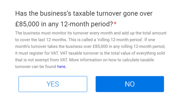 Step 14: In most instances, the answer will be ‘no.’ You can apply for a registration exception if the business goes over the VAT threshold temporarily. If you apply for an exception and are successful, HMRC will contact you to tell you your request has been accepted.
