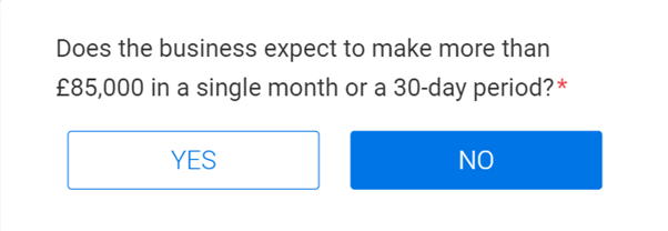 Step 22: Please select your business's estimated VAT-taxable turnover in the next 12 months.