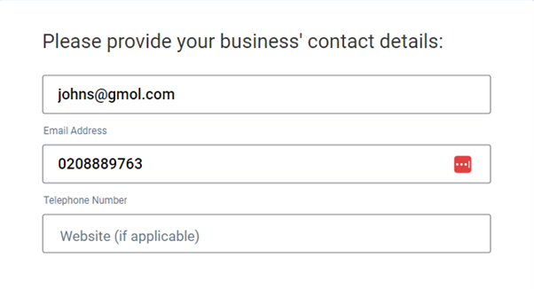 Step 17: Enter your business’ contact details. If you do not have contact details yet, enter your personal details.