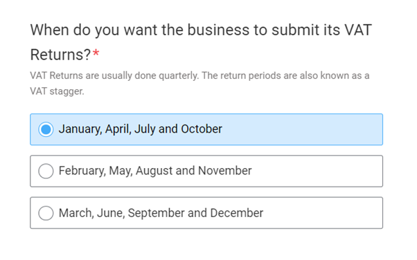 Step 29: It is up to you when you wish to submit your business’ VAT returns. Some factors to consider are your incorporation date and when you plan to start charging VAT to your customers.