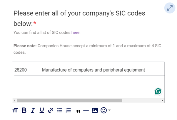 Step 19: You can find your company’s SIC codes by searching your name on the register here.